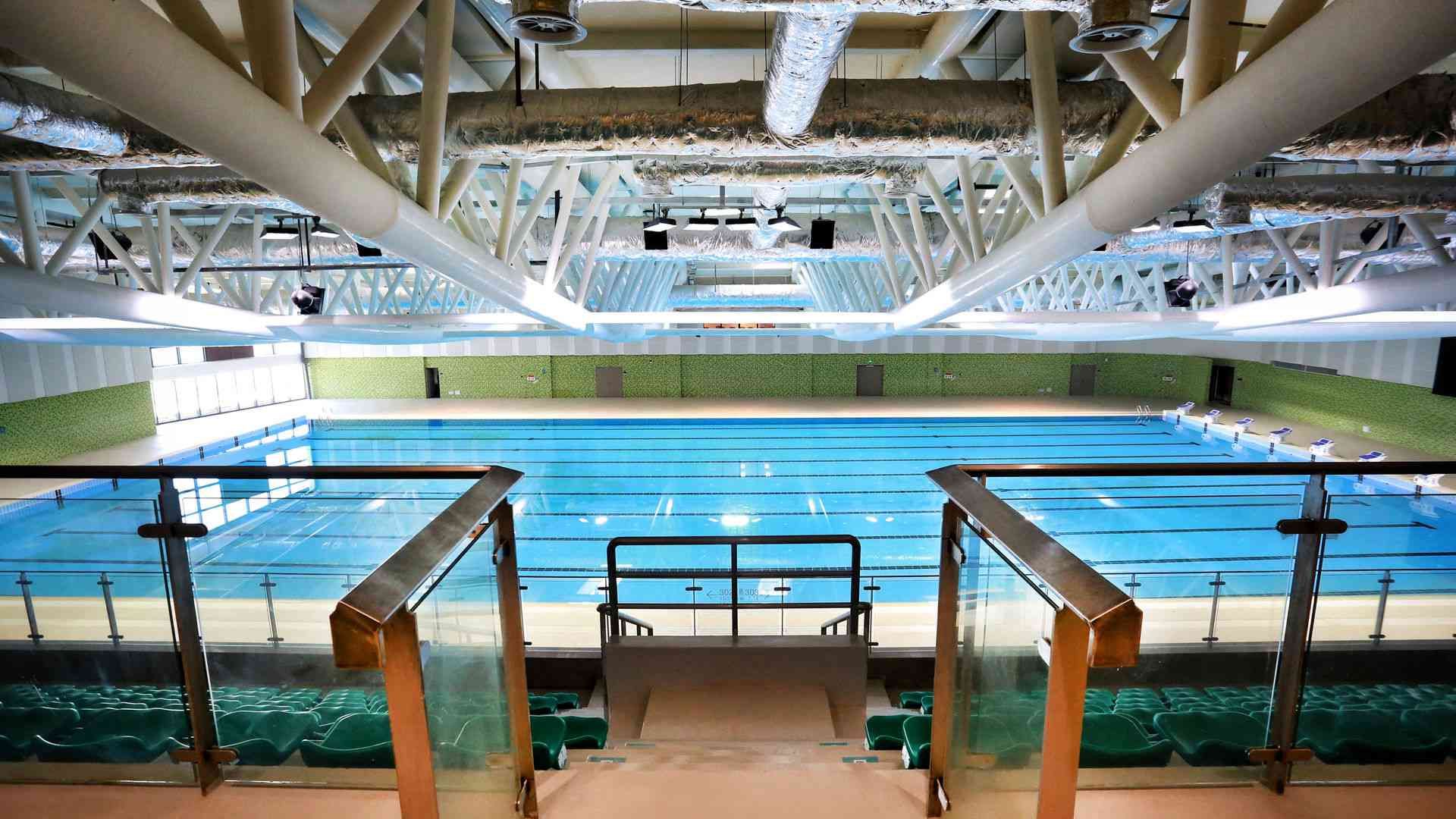 馆内泳池按照奥运标准尺寸建造,为50米 x 20米的奥运标准泳池,池水深度为1.4米至2.2米。为了方便师生使用,泳池还配备了专属的更衣室,更衣室内设有私人储物柜及淋浴房等设施。